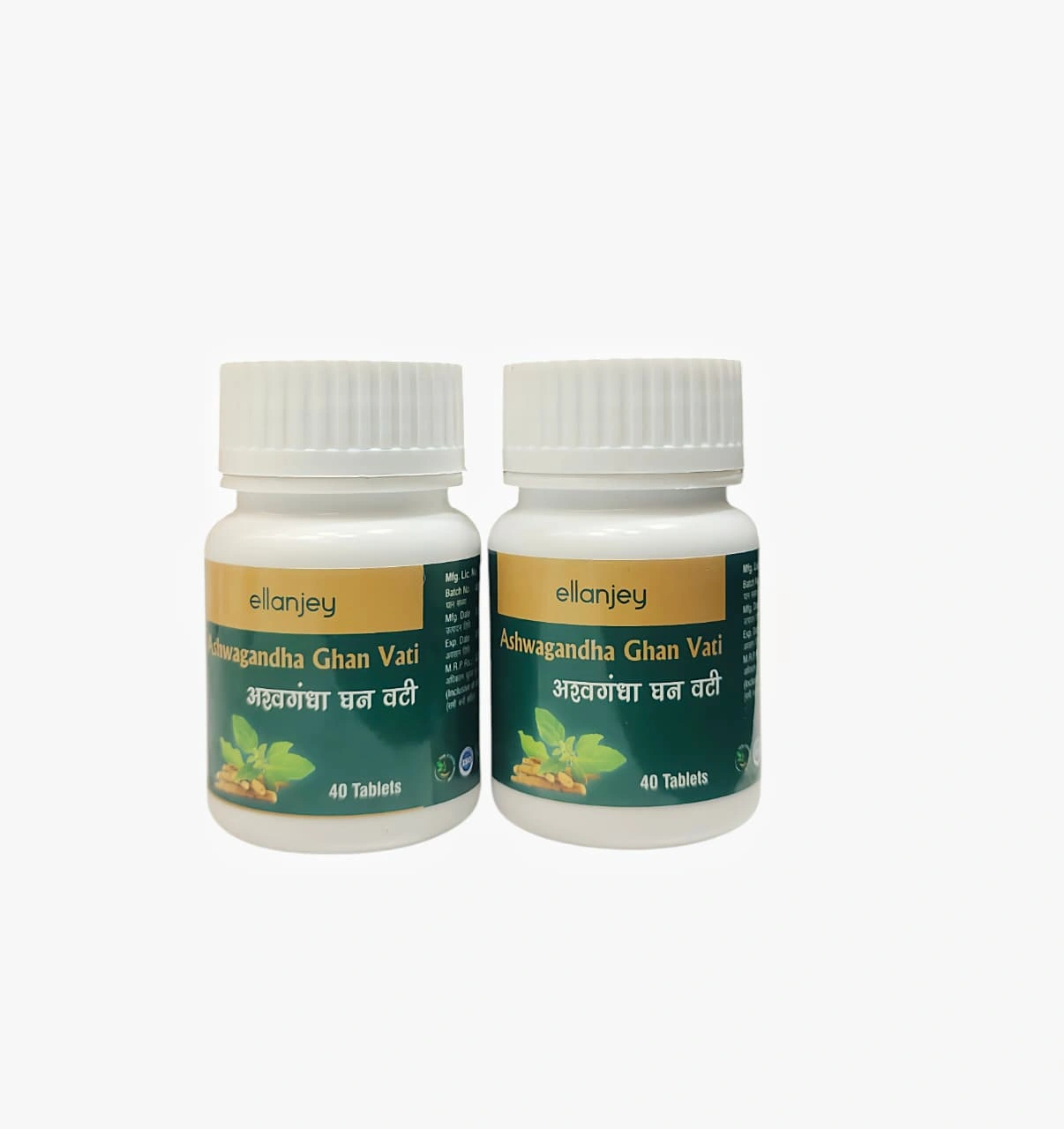 Ashwagandha Ghan Vati by ellanjey is a concentrated tablet form of Withania somnifera root. “Ghan” means a solid aqueous extract, making this tablet more potent than simple powder. It is a powerful adaptogen that reduces cortisol levels, improves muscle strength, and supports restful sleep. Ideal for modern lifestyle-related fatigue and anxiety.