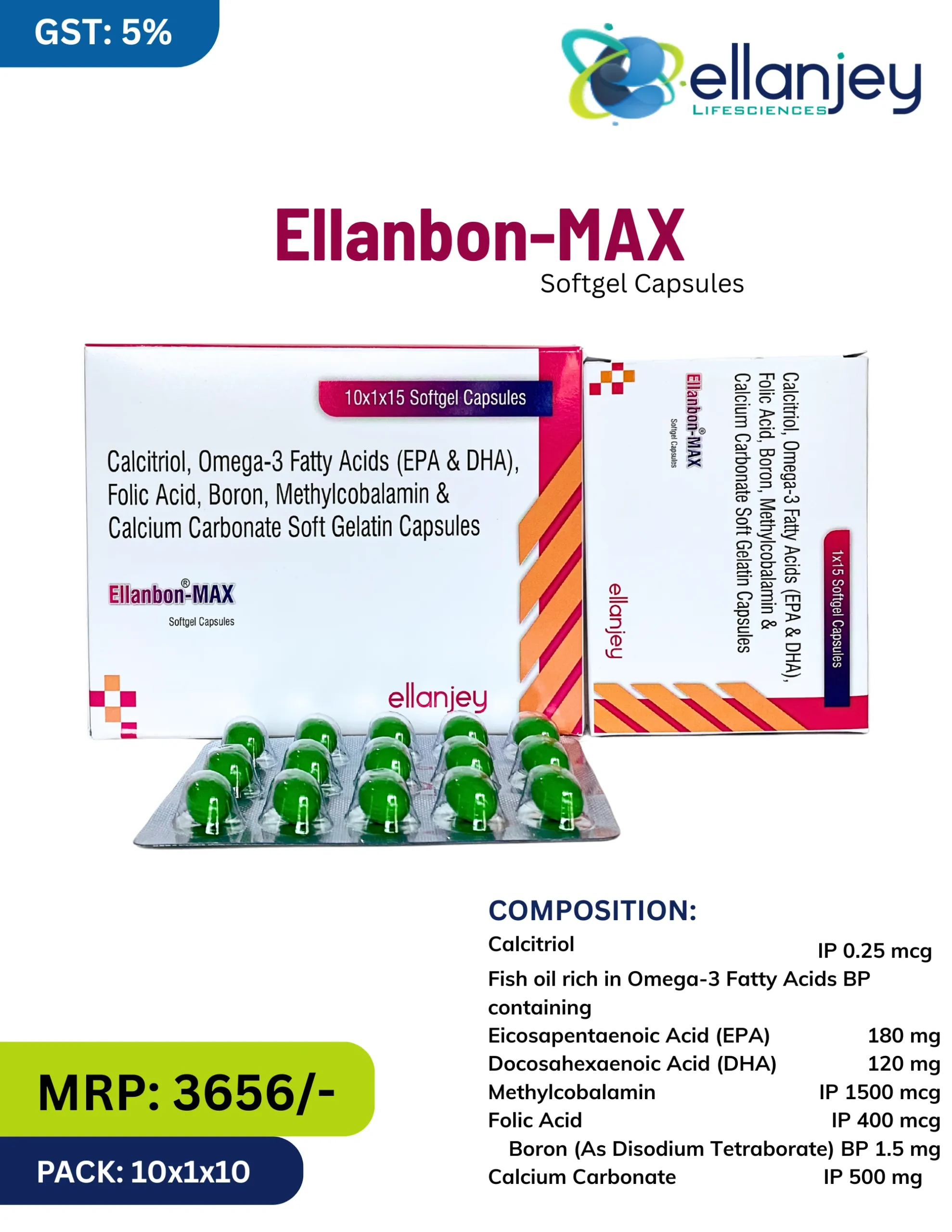 Home » Products » Softgel » Calcitriol, Omega-3 Fatty Acids (EPA & DHA), Folic Acid, Boron, Methylcobalamin & Calcium Carbonate Soft Gelatin Capsules
