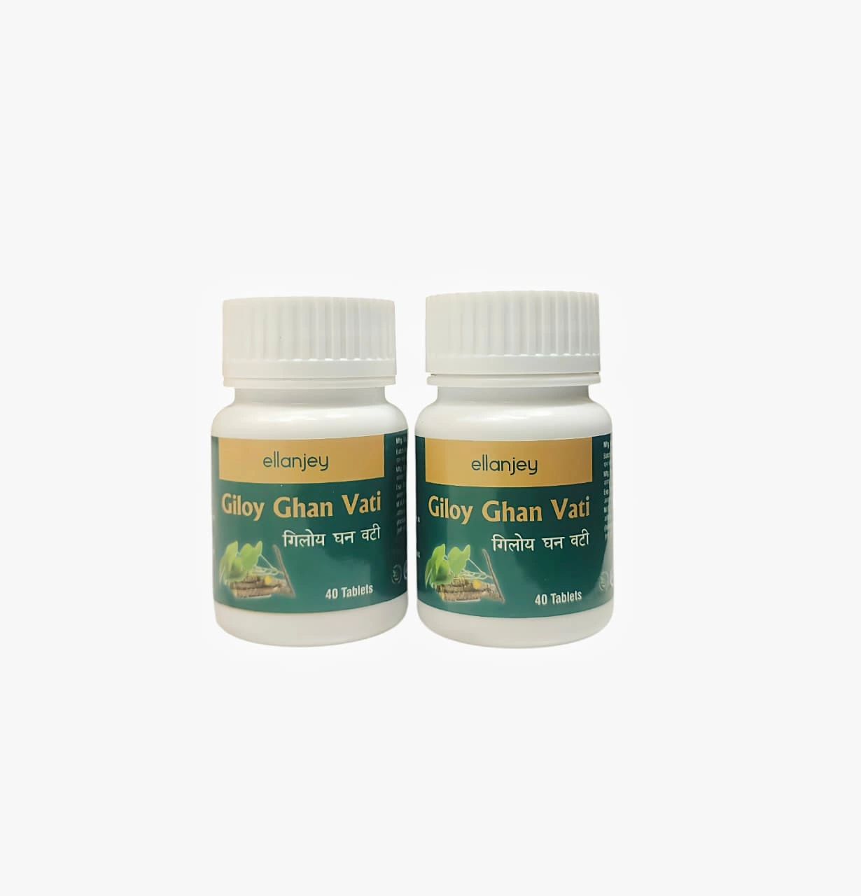 Giloy Ghan Vati by ellanjey is a solid aqueous extract of Tinospora cordifolia (Giloy/Guduchi). It is one of the most respected immunomodulators in Ayurveda. This tablet is specifically indicated for chronic intermittent fevers, post-viral weakness, recurrent infections, and as a supportive therapy for dengue and chikungunya. It improves platelet counts naturally.